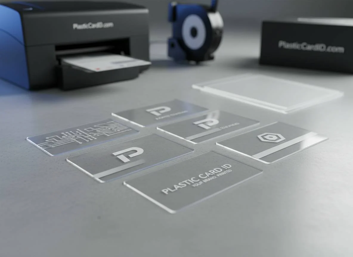 Premium clear plastic business cards: durable, transparent, modern branding with crisp printing and rounded corners for standout impressions.